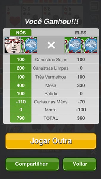 Você pode jogar online, contra jogadores reais, ou offline, contra robôs. A segunda opção é ideal para quem está sem acesso à internet. Também é possível salvar as partidas e recomeçar de onde parou, bater papo com os adversários pelo chat exclusivo, e enviar e receber presentes grátis para seus amigos. É considerado um jogo mais técnico e exigente, já que é mais difícil que o Buraco.
